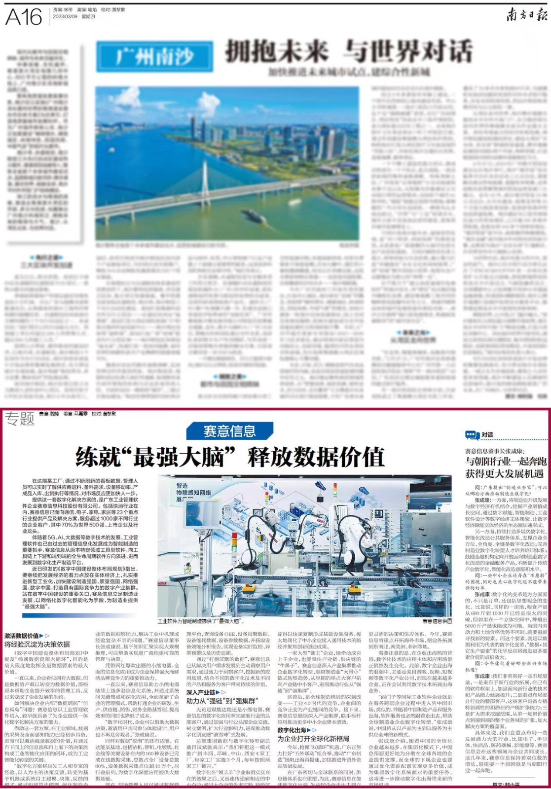 近日印發(fa)的《數(shu)字(zi)(zi)中國(guo)建設整體布局規劃》指(zhi)出,要(yao)繼續把(ba)發(fa)展經濟的著力點放在實體經濟上,扎(zha)實推進新型(xing)工業化(hua),加快建設制(zhi)造強國(guo)、質量強國(guo)、網(wang)絡強國(guo)、數(shu)字(zi)(zi)中國(guo),打(da)造具有國(guo)際競(jing)爭力的數(shu)字(zi)(zi)產業集群。站在數(shu)字(zi)(zi)中國(guo)建設的重要(yao)關口,賽意(yi)信息立足制(zhi)造業發(fa)展,以網(wang)絡化(hua)數(shu)字(zi)(zi)化(hua)智能化(hua)為手(shou)段,為制(zhi)造業提供“最強大腦”。
